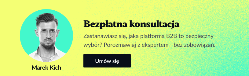 Możesz też skorzystać z usług konsultanta e-Commerce (nasz CEO, Marek Kich chętnie Ci tu pomoże). Doświadczony konsultant, który brał udział w już niejednym wdrożeniu, będzie w stanie polecić Ci rozwiązanie odpowiednie dla Twojego biznesu i wesprzeć w samym procesie budowy sklepu B2B.
