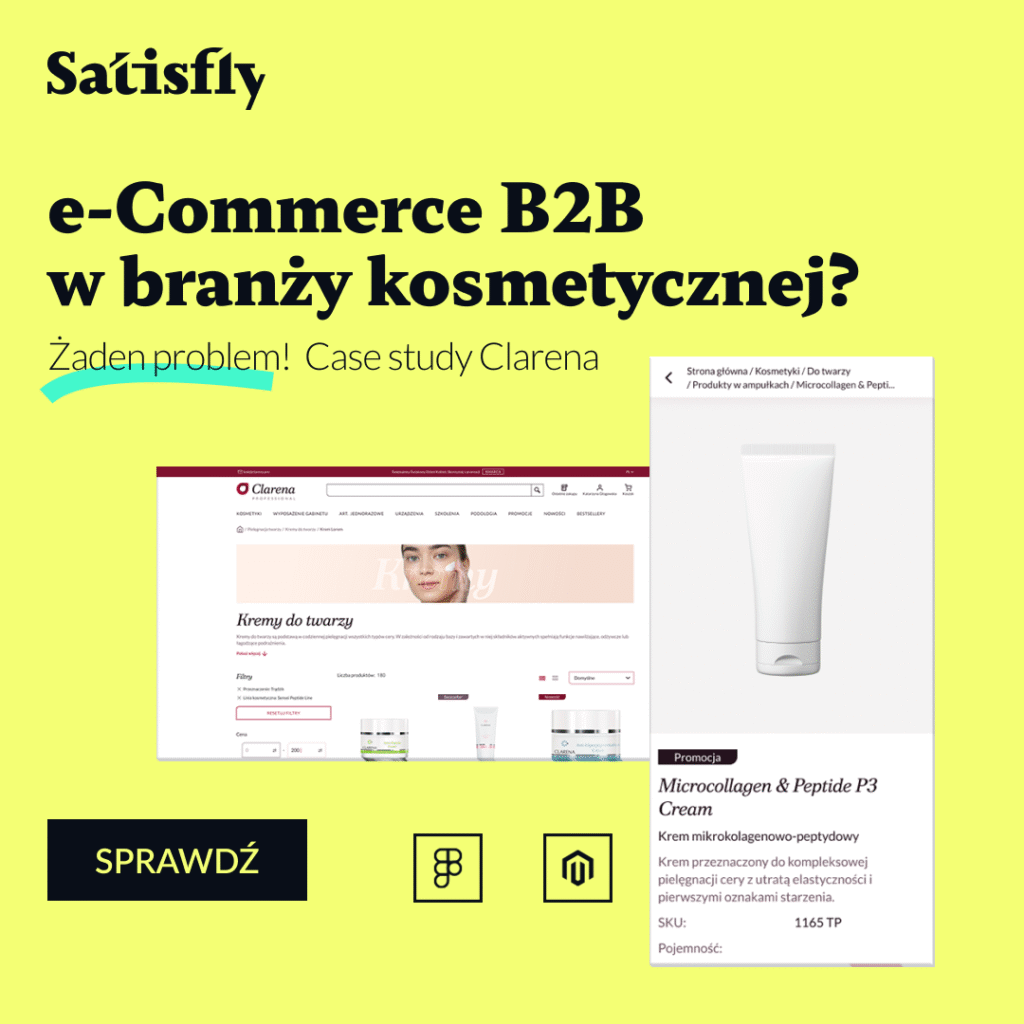 Na szczęście Magento posiada całkiem niezłe możliwości w tym zakresie. Na tym silniku możesz stworzyć naprawdę fajne filtrowanie. Spójrz na sklep B2B firmy Clarena. Możesz w nim odfiltrować produkty po linii kosmetycznej, opakowaniu, składniku aktywnym, czy działaniu. Co najlepsze filtry te można łączyć, dzięki czemu klientka jest w stanie szybko i wygodnie znaleźć dokładnie taki produkt, jakiego szuka.